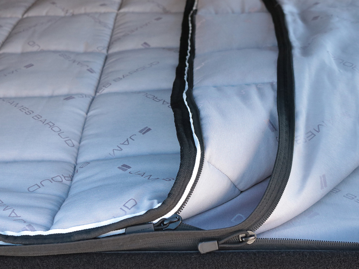 Exclusivement développé pour les tentes de toit James Baroud, le ThermoZip Bedding System assure une distribution régulière de la couette, limite les mouvements nocturnes et garantit une qualité de repos constante, stable et enveloppante, quelles que soient les conditions climatiques ou la destination. Il a été pensé pour offrir chaleur, maintien et tranquillité d'esprit nuit après nuit, que ce soit en vanlife ou lors de bivouacs off-road.