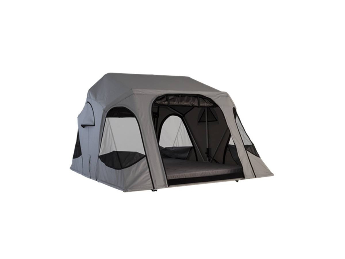 Sur le marché des tentes à toit souple, il s'agit de la plus rapide à monter et à replier. C'est également l'une des tentes de toit les plus légères au monde en raison d'une structure entièrement en aluminium. Elle résiste très bien au vent grâce à sa forme en igloo. Son sol en composite d'aluminium, avec une couche intérieure isolante, assure une bonne isolation acoustique lors des fortes pluies. La conception et la qualité des matériaux utilisés en font une tente flexible unique au monde. Elle peut supporter des vents violents et bénéficie d'une garantie de 5 ans. Les rails de fixation sous le plancher permettent de poser la tente sur les barres de toit ou la galerie de toit, et de l'ouvrir en position droite ou gauche ou arrière.