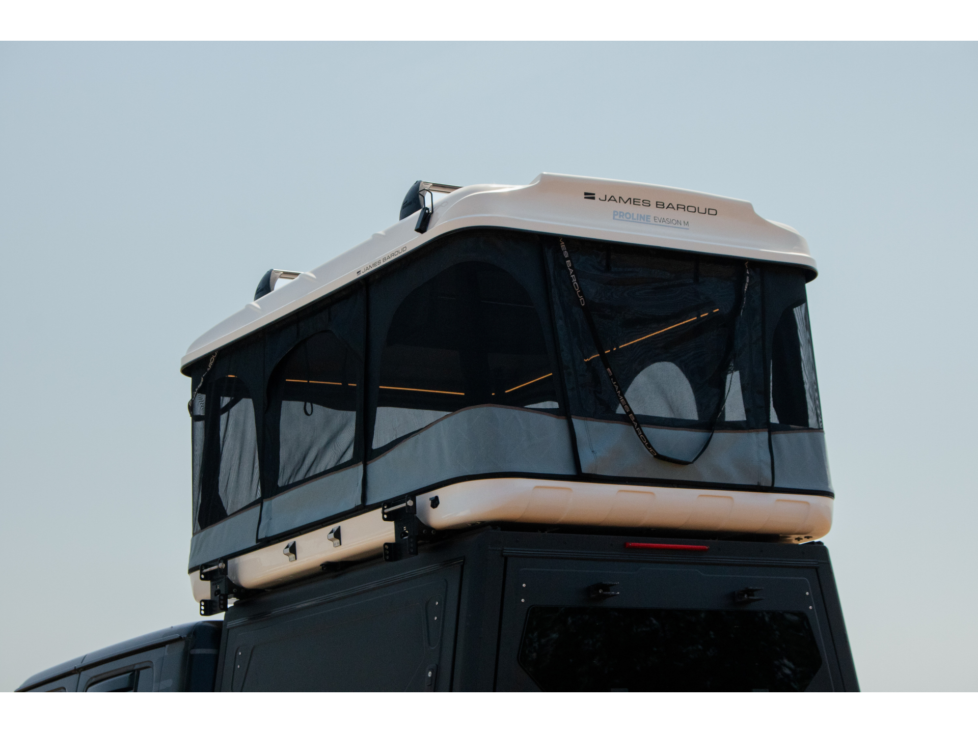 Conçue pour les voyageurs recherchant fiabilité et confort, la James Baroud Evasion Proline M est une tente de toit rigide qui combine résistance, praticité et espace habitable. Sa coque en GRP multicouche au profil aérodynamique offre une excellente tenue face aux conditions climatiques les plus exigeantes, tout en réduisant la résistance à l'air et la consommation de carburant. Discrète et compacte lorsqu'elle est fermée, elle déploie un volume généreux une fois ouverte, avec une hauteur intérieure de 98 cm et une surface de couchage de 198 x 140 cm, adaptée à deux adultes et un enfant. Réalisée avec des matériaux techniques de premier ordre, elle assure isolation, confort et durabilité pour toutes vos aventures en Vanlife, en bivouac tout-terrain ou en voyage en autonomie.