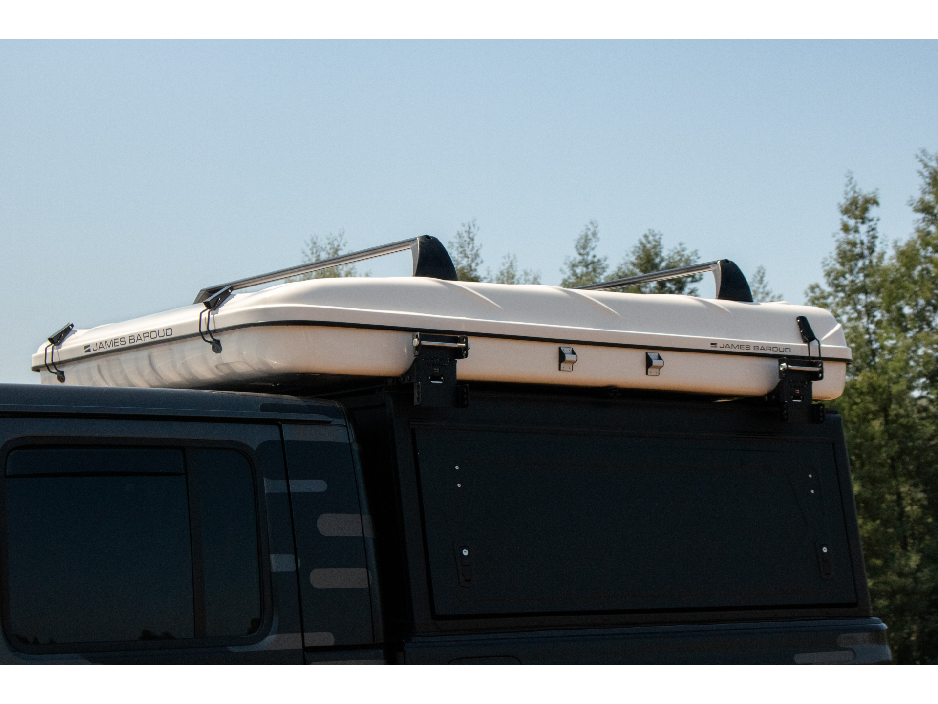 Imaginée pour satisfaire les attentes des explorateurs et des voyageurs en autonomie, la coque de l'Evasion Proline M combine solidité structurelle, protection face aux intempéries et isolation thermique efficace. Sa fabrication en GRP monobloc assure une étanchéité totale et une défense fiable contre les agressions extérieures, tout en contribuant à maintenir une température intérieure plus constante. Ce procédé, fruit du savoir-faire James Baroud, garantit une coque fiable, endurante et parfaitement adaptée aux environnements les plus contraignants.