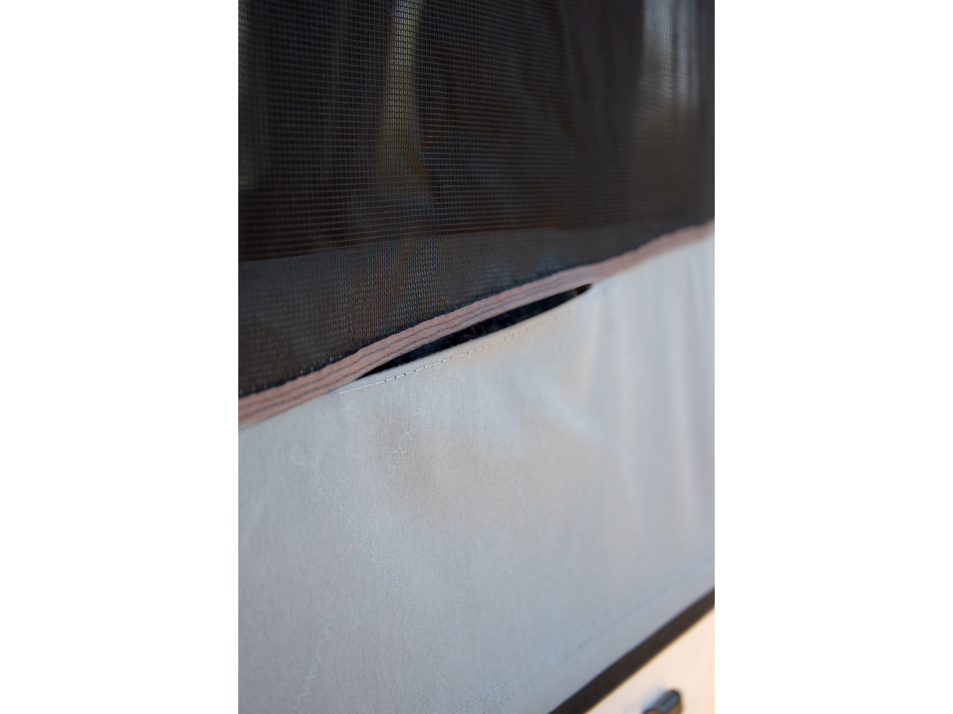 Le système de fermeture repose sur le même principe de simplicité et d'efficacité : les soufflets intégrés accompagnent le repli de la toile afin d'obtenir un rangement propre et compact, avant de refermer et verrouiller solidement la coque rigide. À la fois fiable et ergonomique, ce dispositif assure une manipulation rapide et intuitive, sans aucun outil, même lors d'arrêts courts ou lorsque les conditions météo sont moins favorables.